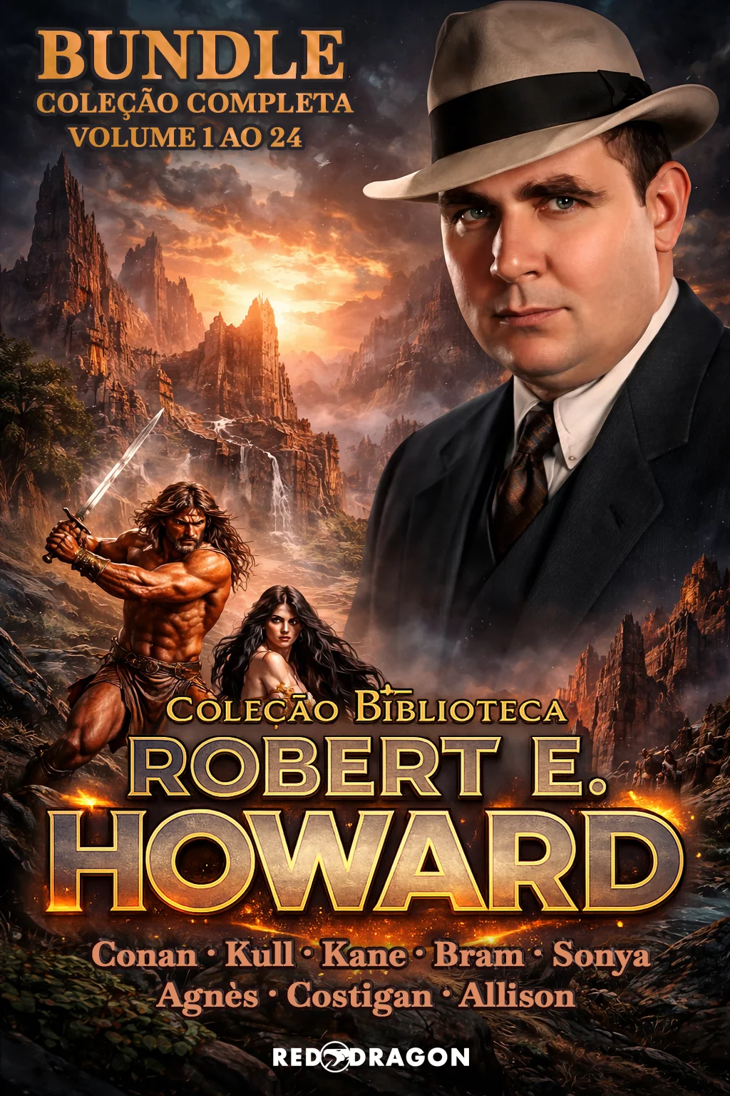 A Biblioteca Robert E. Howard reune em uma só coleção as aventuras de Conan, Kull, Bran Mak Morn, Solomon Kane, El Borak, Red Sonya, Dark Agnes, Cormac FritzGeoffrey, Turlogh Dubh, James Allison, Steve Costigan, Breckinridge Elkins e muitos outros personagens de fantasia, horror, faroeste, humor e ficção hstórica criados pela admirável mente de Robert E Howard.